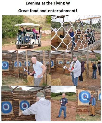 Tours included a trip up nearby Pike's Peak on the COG Railway, a tour of the U.S. Air Force Academy museum along with a side trip to Garden of Gods, a visit to the WWII Air Museum, and a memorable evening at the Flying W Ranch with great food, activities and displays, and live entertainment. The weather even cooperated with thunder and lightning while the band was playing Ghost Riders In The Sky! Hard to beat that.